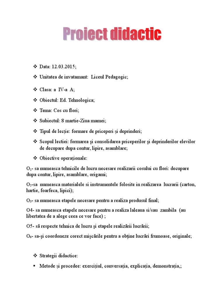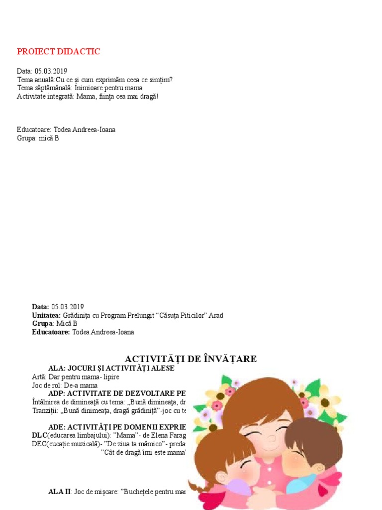 Proiect Ala 1 Flori Pentru Mama 09 03 2018 Teutsss 07 03 2018