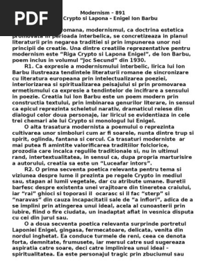 Modernism Ion Barbu Riga Crypto Si Lapona Enigel Docx